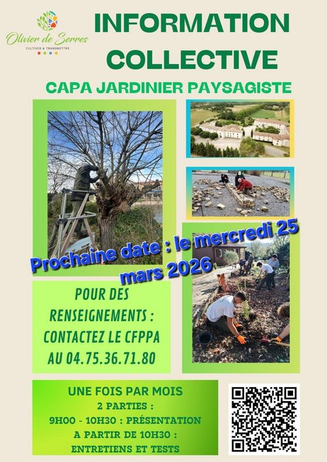 Information Collective de CAPa Jardinier Paysagiste - Le mercredi 25 mars 2026